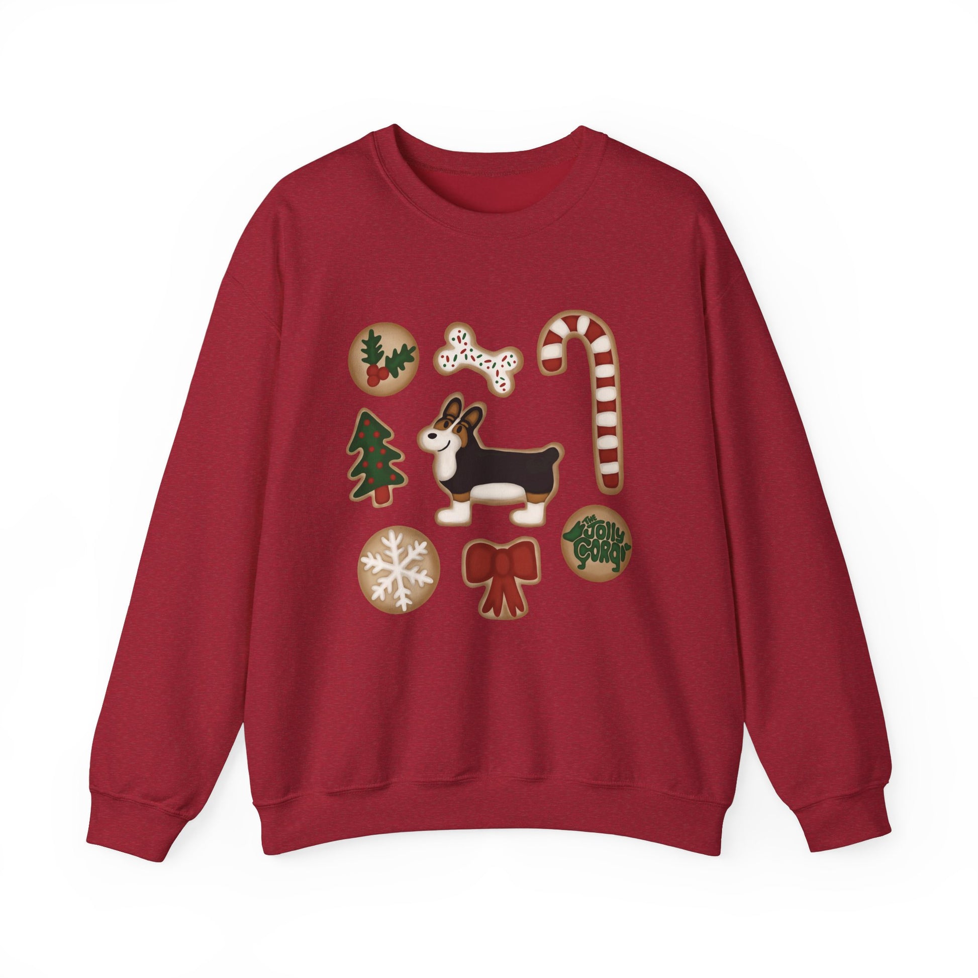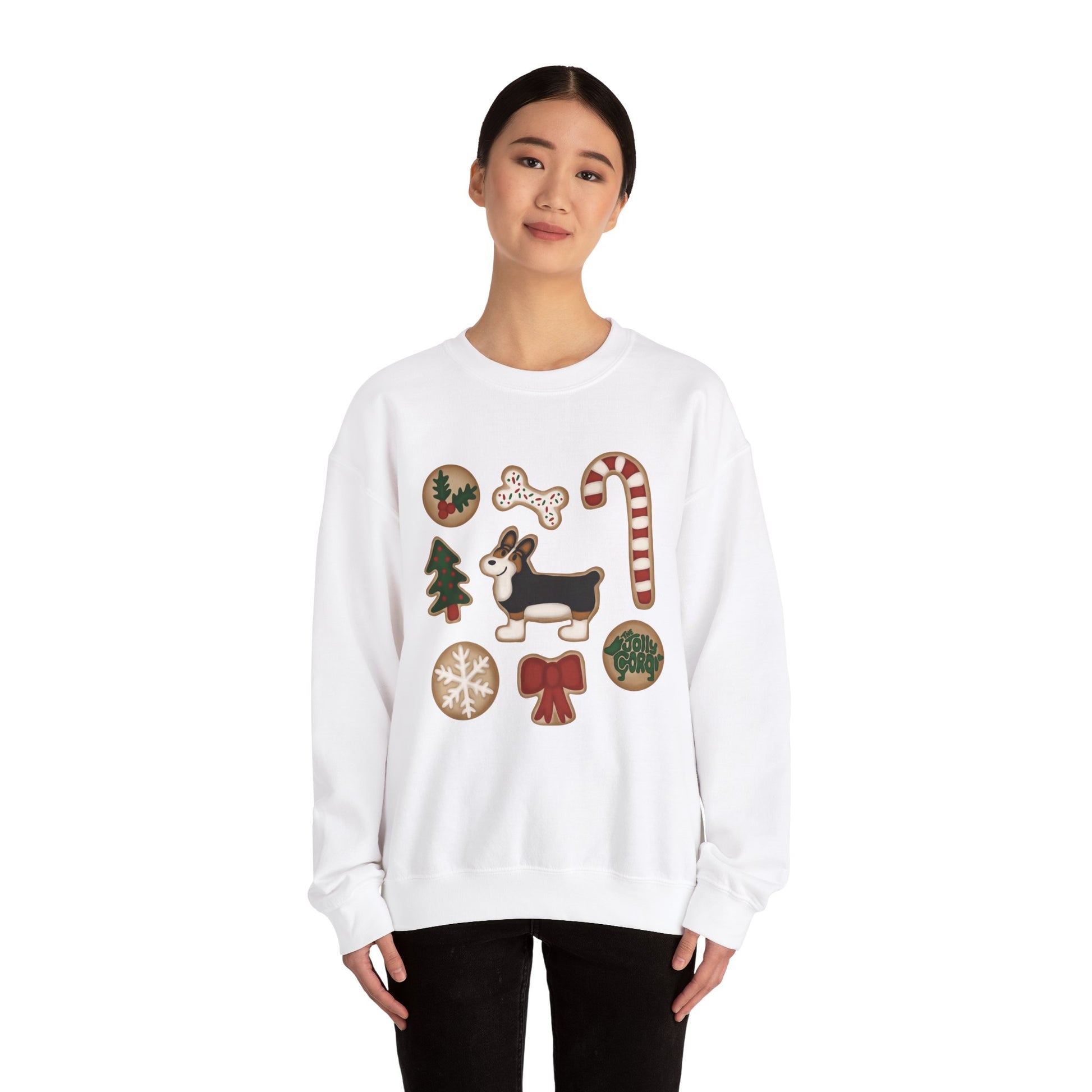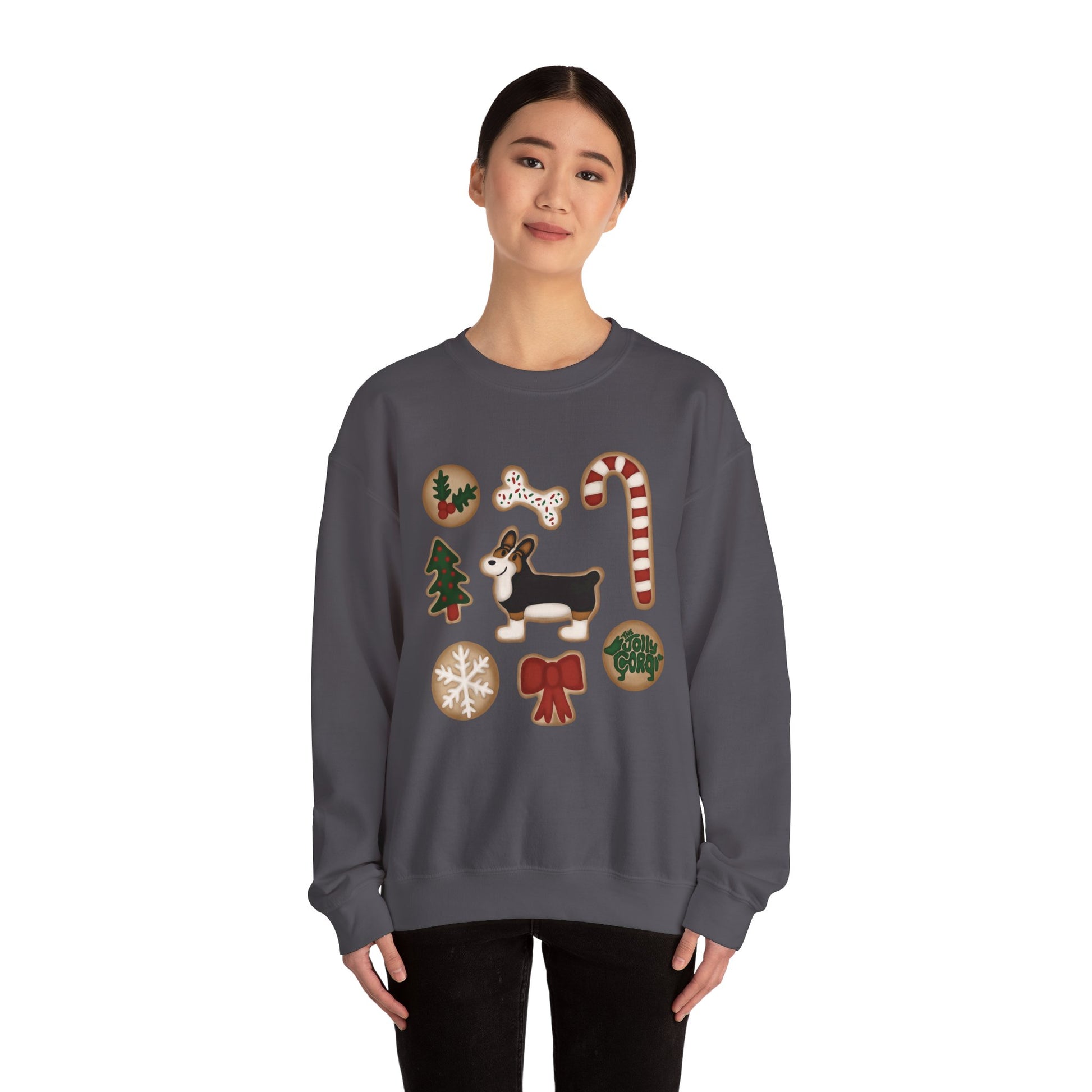 Black Headed Tri Corgi Docked - Christmas Cookie Crewneck Sweatshirt - The Jolly Corgi