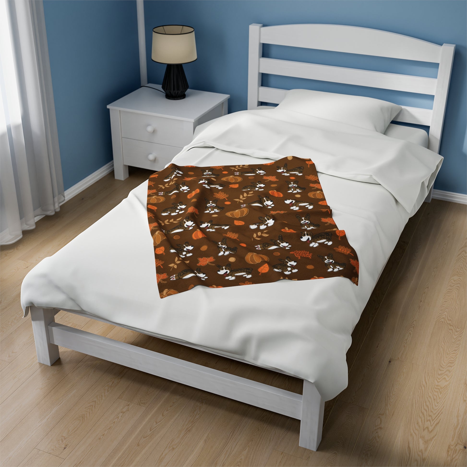 Brindle Corgi Docked Tail - Brown Autumn Velveteen Blanket - The Jolly Corgi