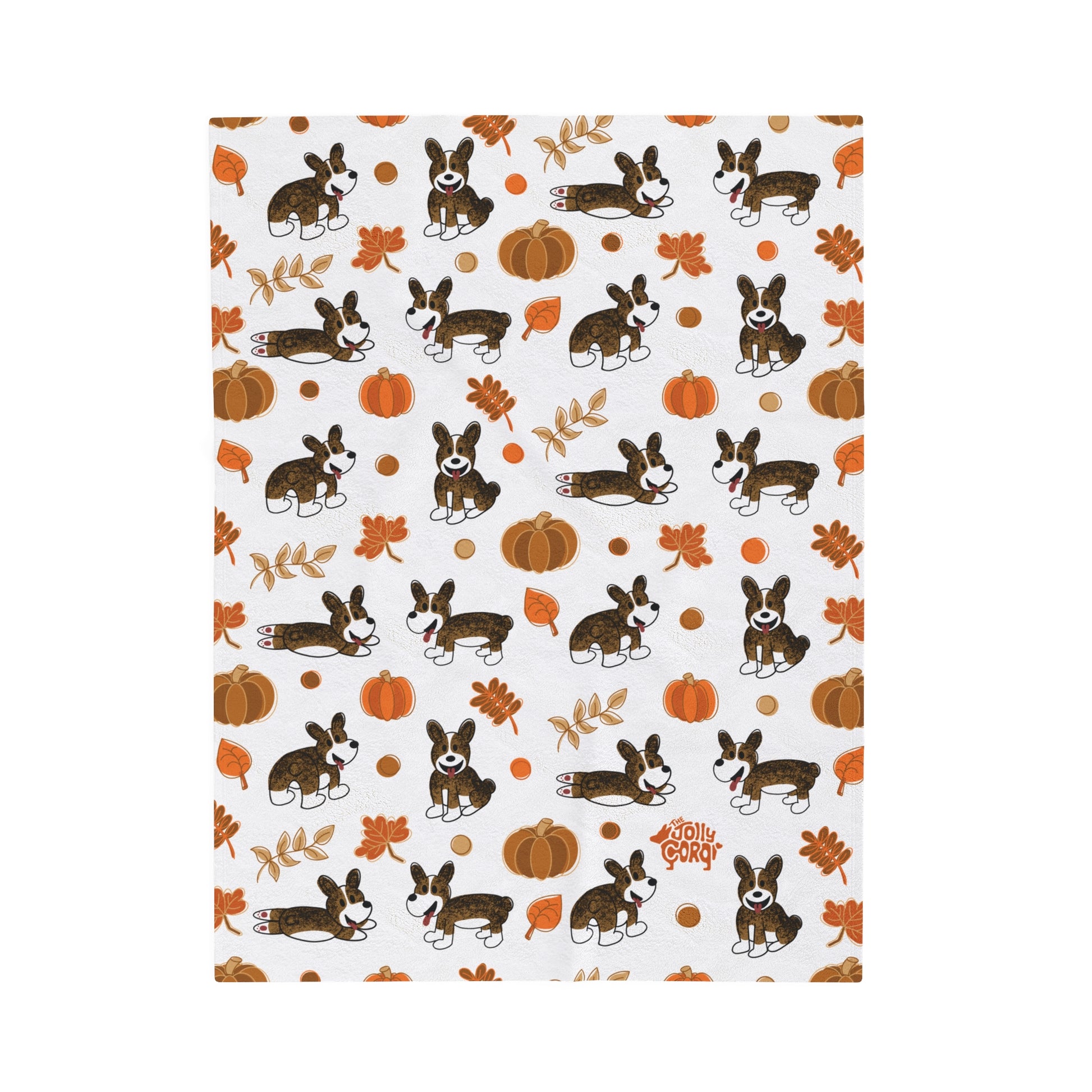 Brindle Corgi Docked Tail - White Autumn Velveteen Blanket - The Jolly Corgi