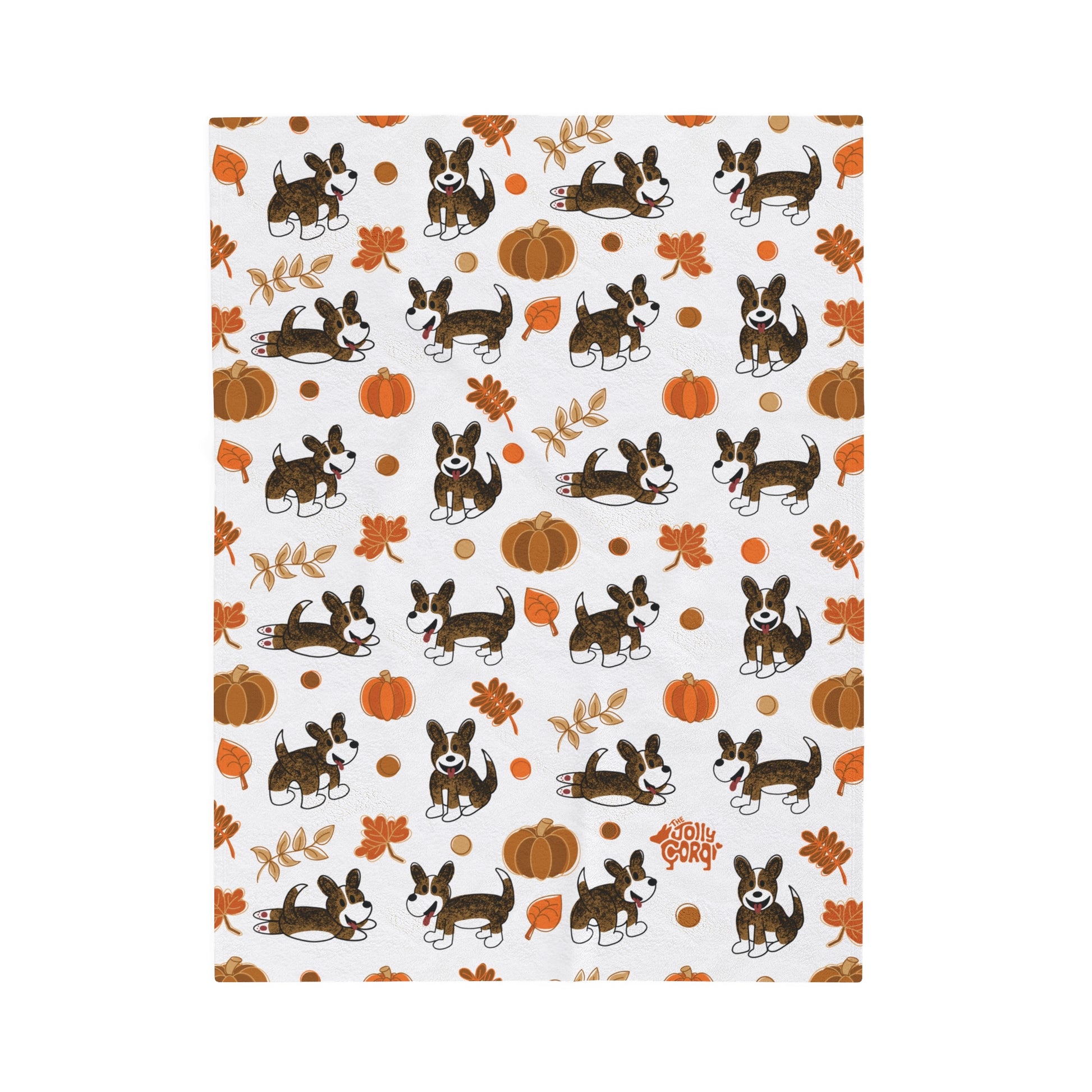 Brindle Corgi Full Tail - White Autumn Velveteen Blanket - The Jolly Corgi
