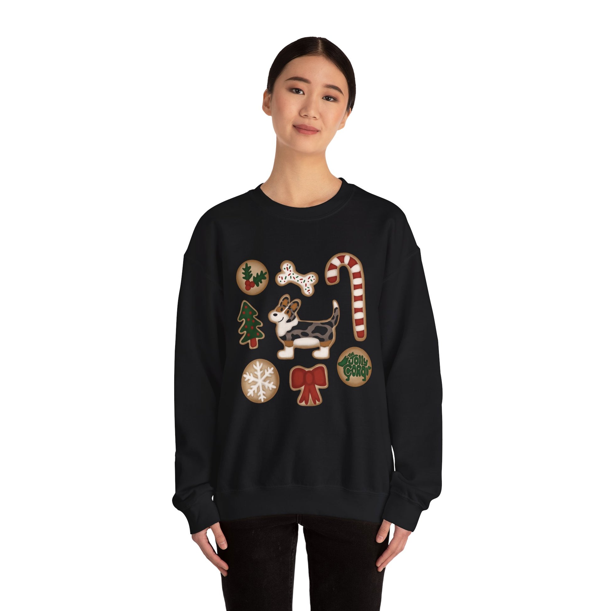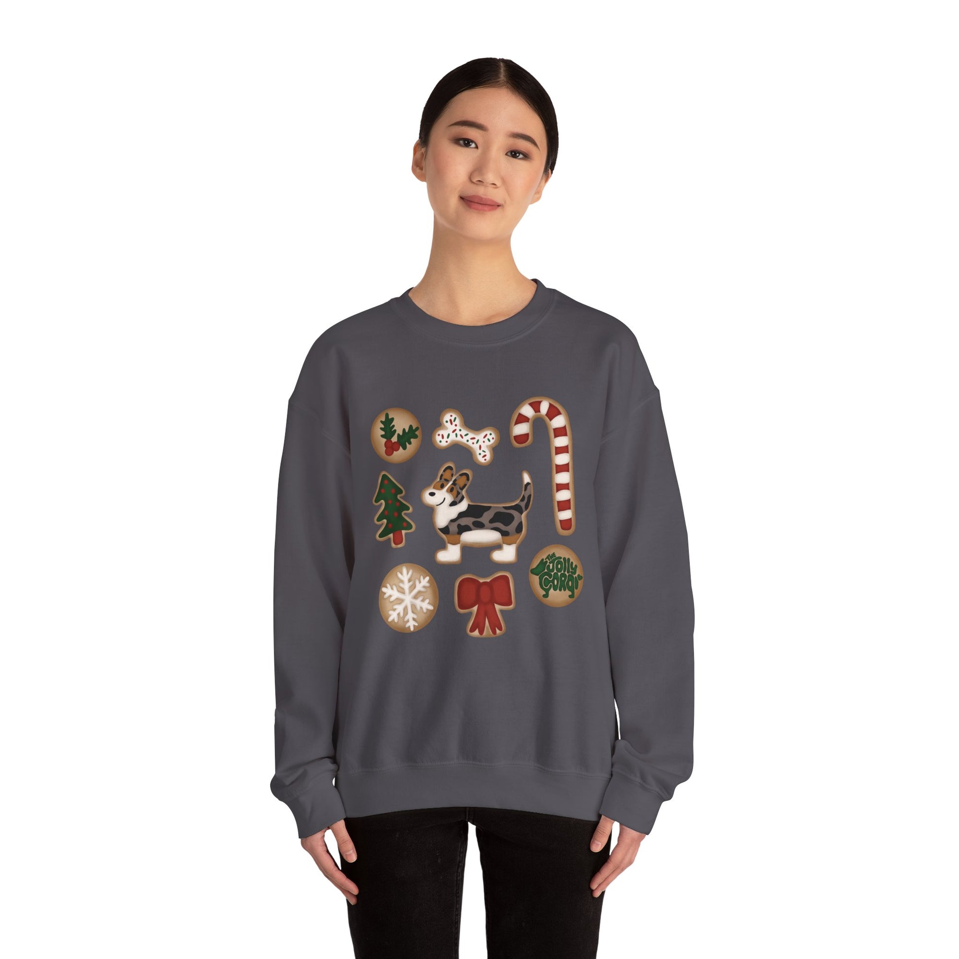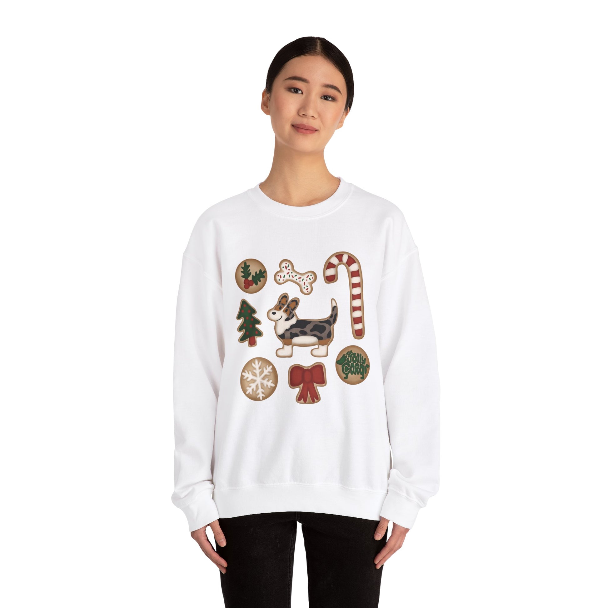 Merle Corgi Full Tail - Christmas Cookie Crewneck Sweatshirt - The Jolly Corgi