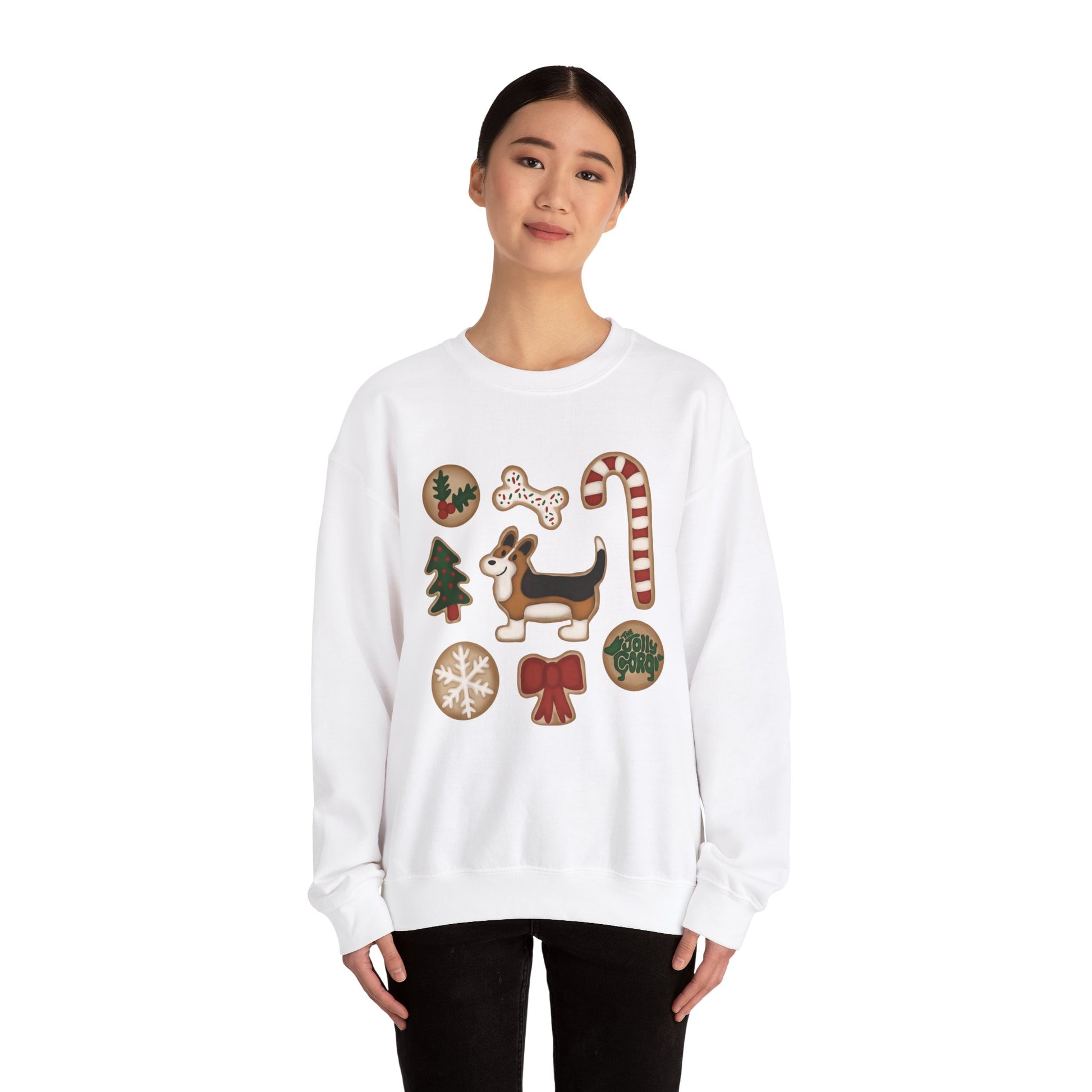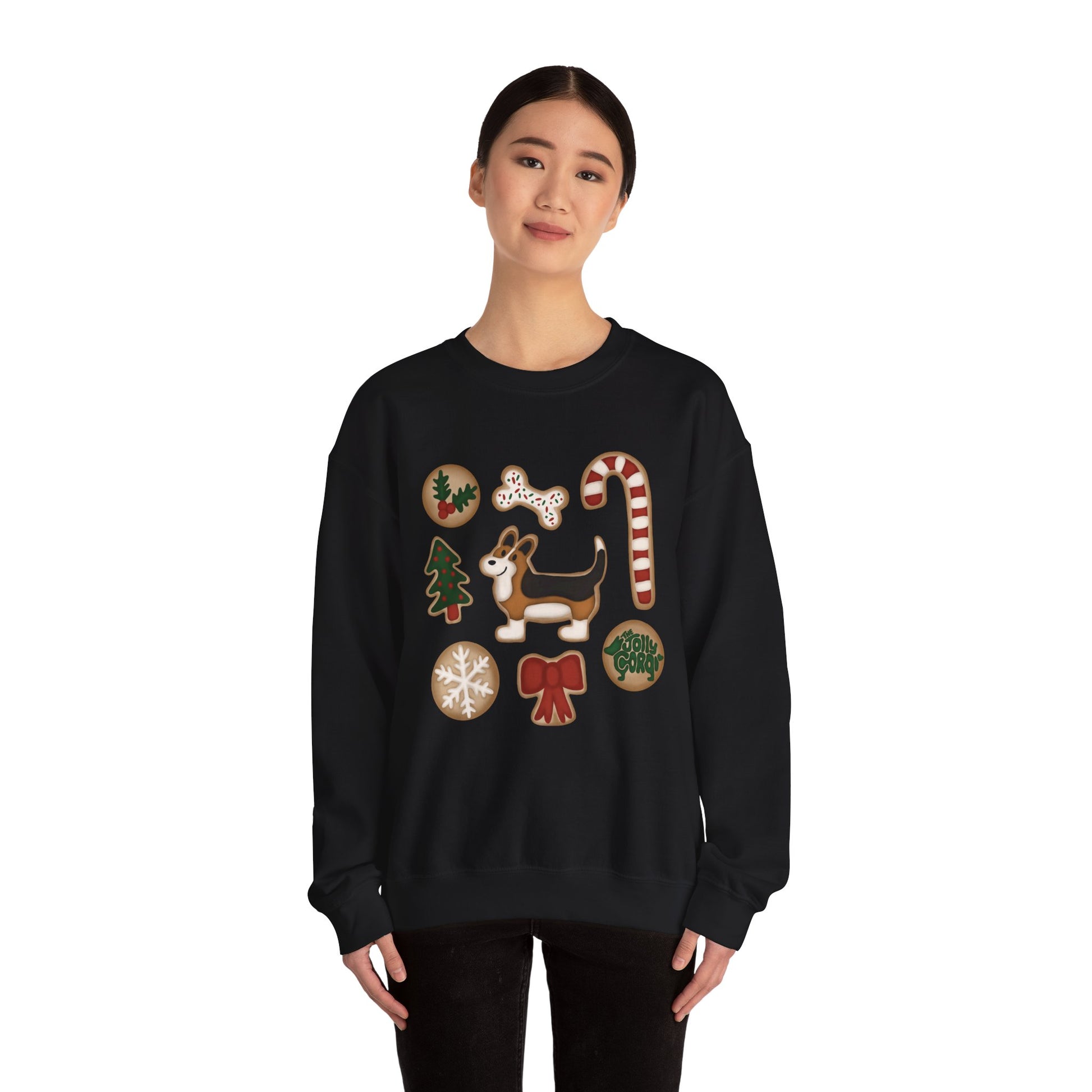 Red Headed Tri Corgi Full Tail - Christmas Cookie Crewneck Sweatshirt - The Jolly Corgi