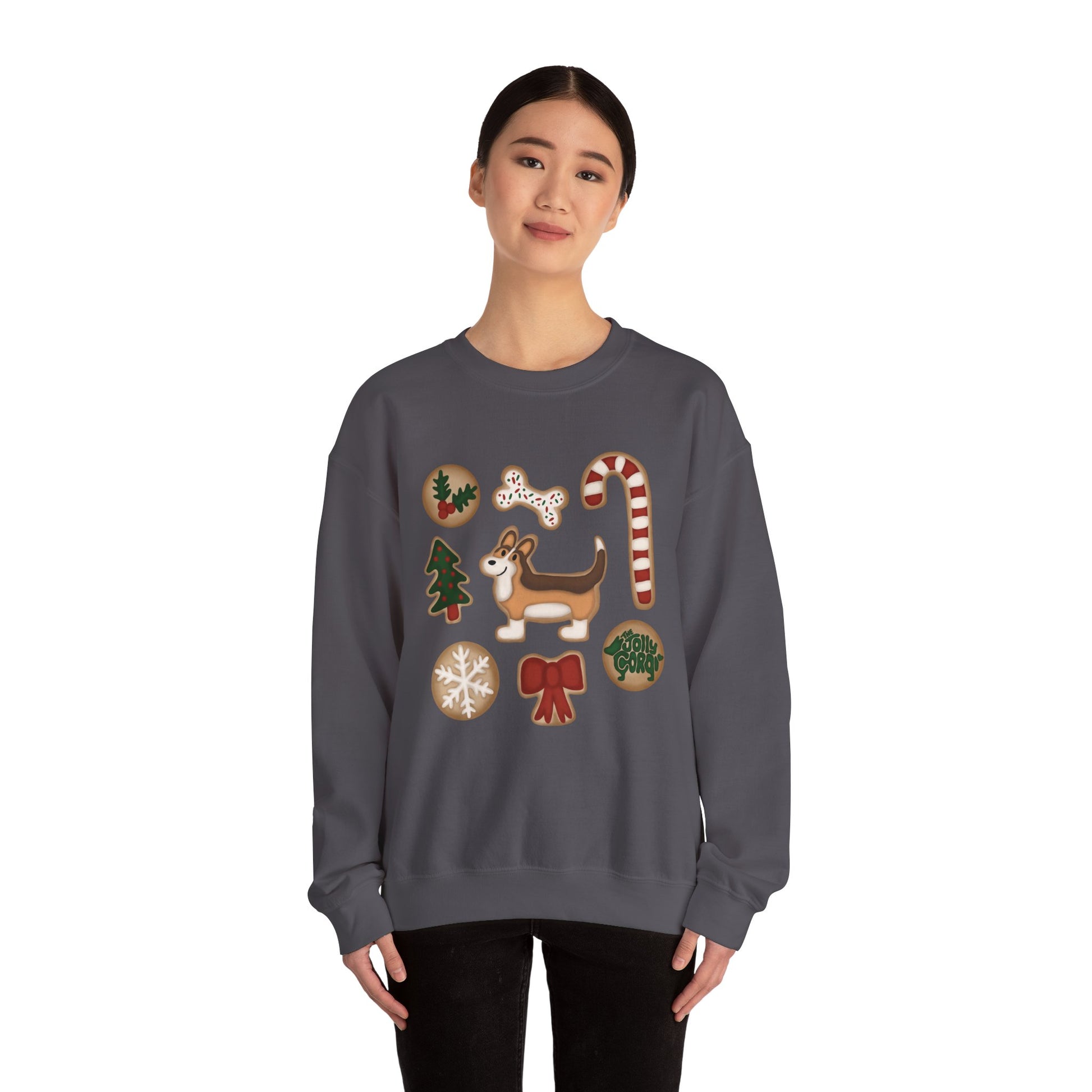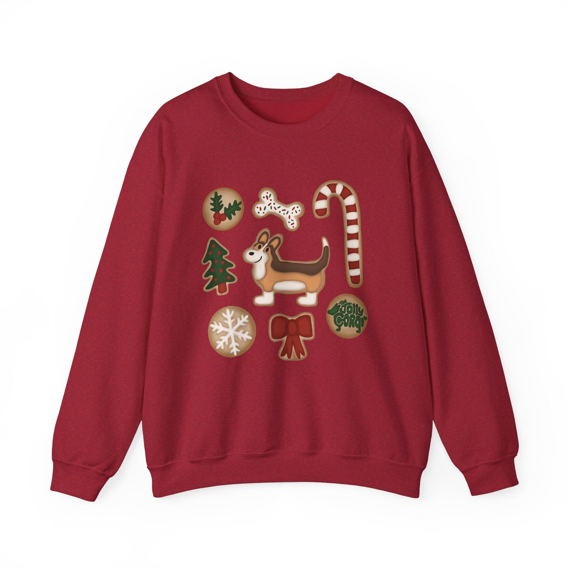 Sable Corgi Full Tail - Christmas Cookie Crewneck Sweatshirt - The Jolly Corgi